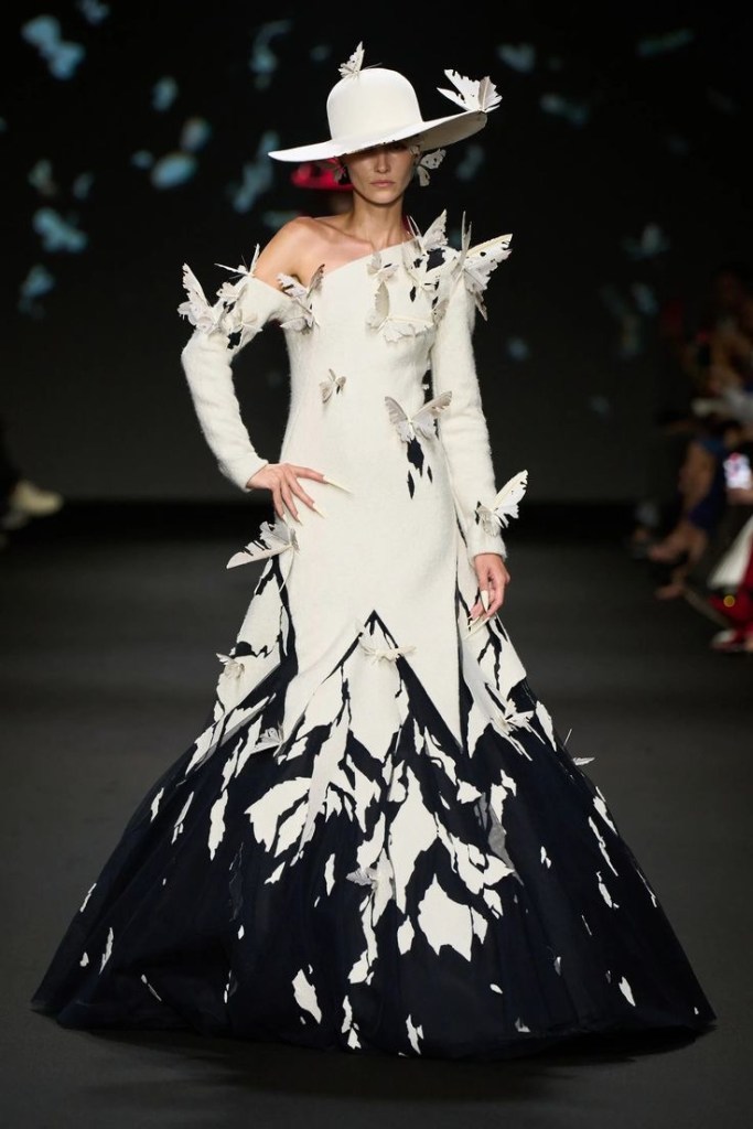 Chinese designer Robert Wun celebrated the 10-year anniversary of his label with a couture show titled “Time”. Born in Hong Kong, the creative moved to London where he studied at London College of Fashion. He graduated in 2012 and launched his own homonym fashion brand in 2014. The brand debuted their first runway show in Paris, January 2023, with the support of Bruno Pavlovsky at CHANEL. Wun became the first designer from Hong Kong to join the Haute Couture Calendar in its history, as a guest member of The Fédération de la Haute Couture et de la Mode. He stated that the aim of the collection was to reflect on “why I do fashion, and what does time mean?” The answer he found is quite simple yet undeniably profound. “To accept that one day everything ends—and that’s okay.”