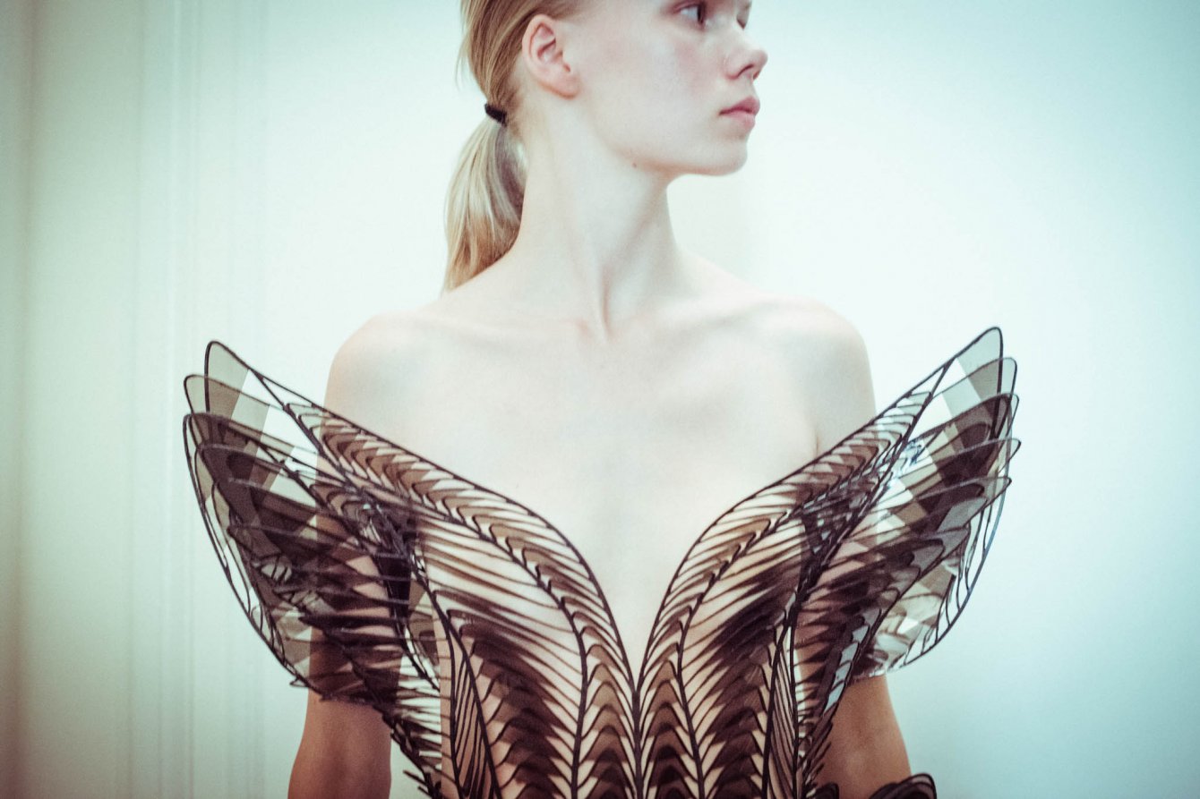 Dal laser cut alla stampa 3D, dalla tessitura elettromagnetica all’impiego di silicone e metalli. Cosa accade quando alta tecnologia e scienza incontrano la moda? La stilista olandese Iris van Herpen svela la risposta. Traendo ispirazione da chimica, fisica, biologia e paleontologia, l’idea che la moda possa essere mossa dalla natura viene spinta oltre le aspettative. “La moda è uno strumento di cambiamento, capace di smuoverci emotivamente. Attraverso la biomimesi guardo alle forze che danno forma alla natura, questi pattern e cicli naturali mi guidano nell’esplorazione di nuove forme di femminilità per una moda più consapevole e sostenibile per il futuro“. L’universo di Iris van Herpen si costella di innovazione e ricerca.